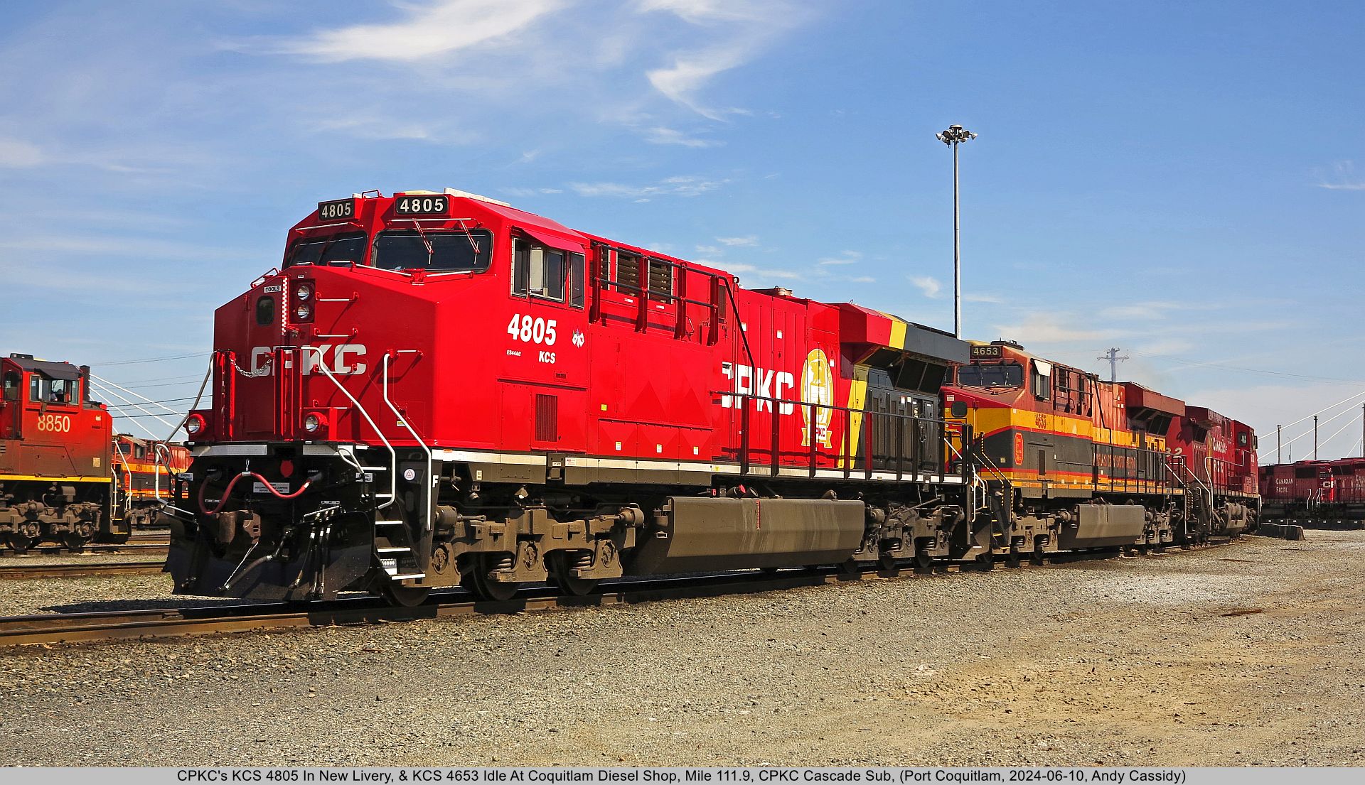| GE ES44AC | 4805 | 61261 | 10/12 | CPKC Scheme: KCS 4805 |