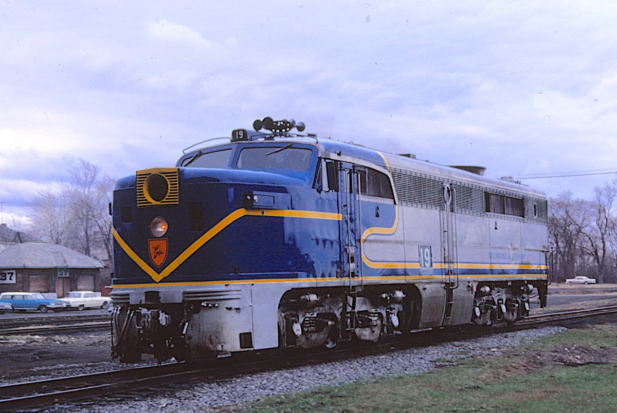 ![]() Delaware & Hudson PA #19 at the station (Denny Custer photo) |
