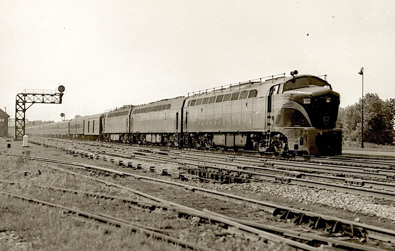 Pennsylvania RR's eastbound "The General" rushes through Englewood, Illinois during July 1951. (T.H. DesMoyes photo / Krambles-Peterson Archives).